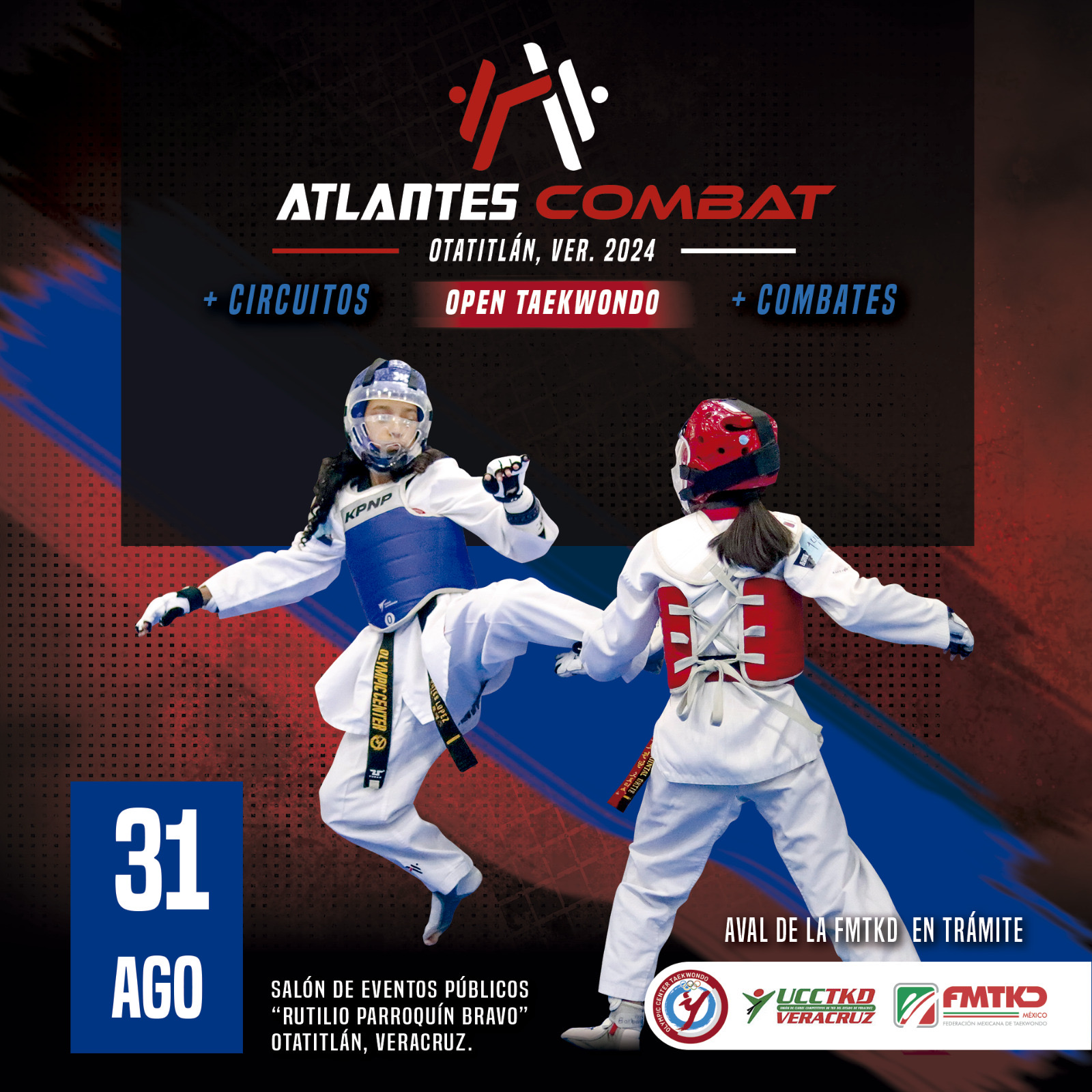 Otatitlán, Ver.– En el Salón “Rutilio Parroquín Bravo” de esta ciudad se realizará este 31 de agosto la primera edición del Open Taekwondo Atlantes Combat, certamen avalado por la Federación Mexicana de Taekwondo y la Unión de Clubes Competitivos de Taekwondo en el estado.