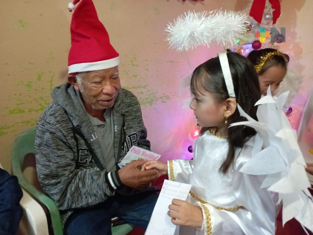 Las personas de la tercera edad que forman parte de este espacio único en su tipo en la región sur de Veracruz, abrieron sus puertas a un grupo de niñas de la escuela primaria Artículo 123, Tomasa Valdés viuda de Alemán, quienes los deleitaron con villancicos y realizaron algunas dinámicas.
