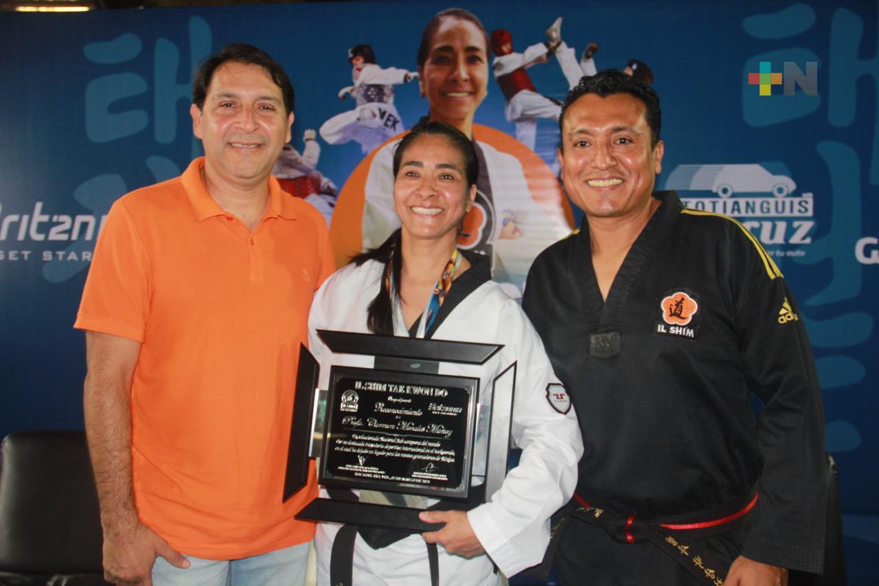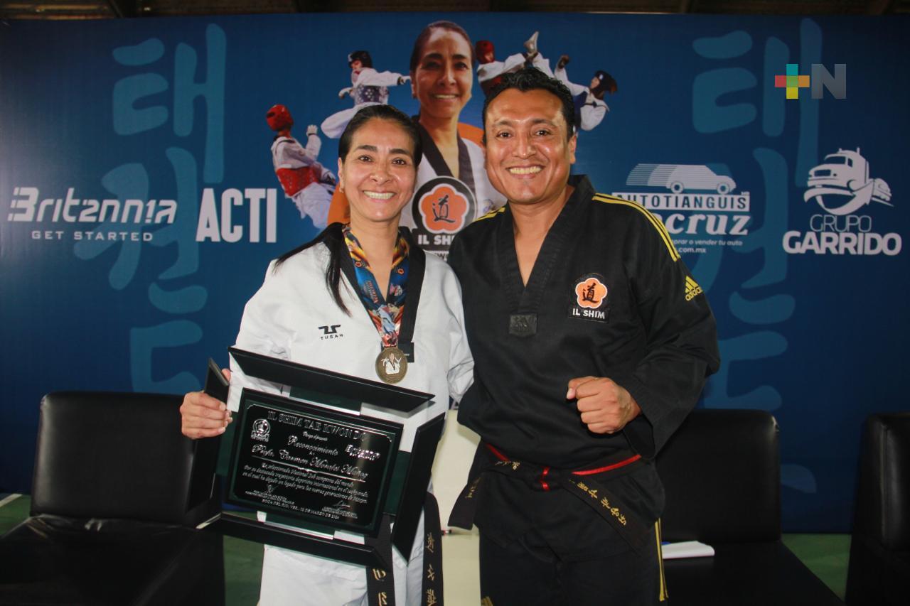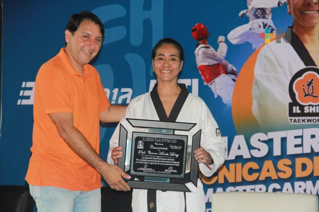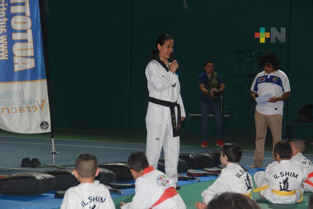 Boca del Río, Ver.- La exseleccionada nacional y subcampeona mundial de taekwondo, Carmen Morales Muñoz, compartió el pasado fin de semana sus vastos conocimientos y técnicas de combate con alrededor de 100 alumnos de Il Shim Taekwondo.