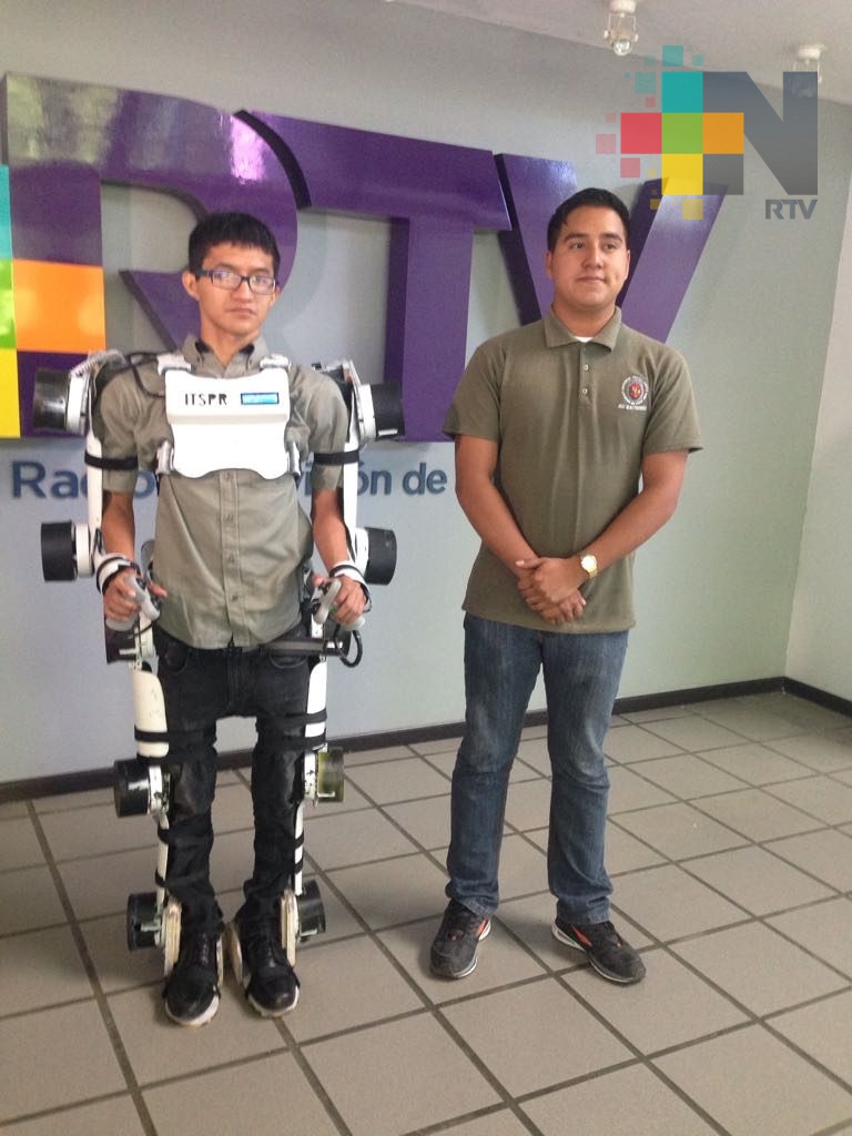Entrevistados en las instalaciones de RTV, Nurivan Antoni Iturbide y Miguel Rivero Bautista comentaron el trabajo que realizan y dieron una demostración con un exoesqueleto para rehabilitación.