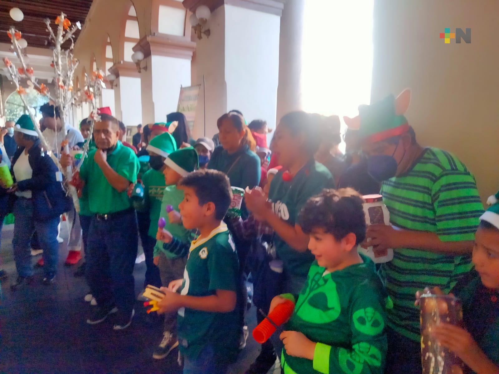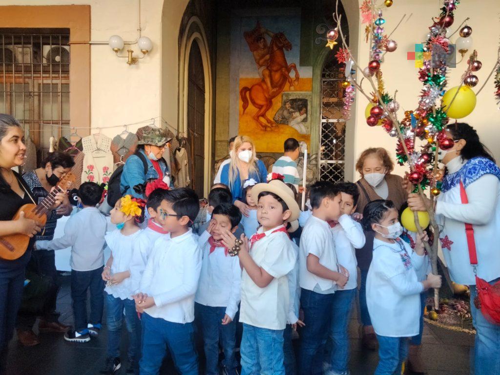 Xalapa, Ver.- Niños de diferentes escuelas de Xalapa ya salen a cantar los versos de “La Rama” por el centro de esta capital.