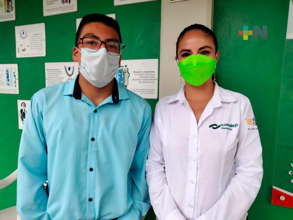 “Conalep nos da la oportunidad de entrar en el proyecto de interactuar con las empresas, de adquirir el conocimiento que las personas que llevan años en esa empresa nos brindan a nosotros para desarrollarlas en el futuro y tener experiencia laboral. Me quedé en la empresa, sigo ahí, estoy como jefe de Recursos Humanos. Voy a hacer tres años y medio en esa empresa, sigo estudiando la universidad y la relación con esa empresa sigue creciendo”, relató Oswan Martínez González, egresado Conalep en Xalapa.