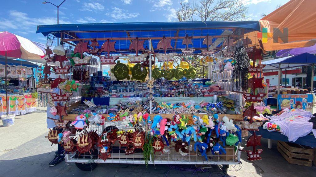 Ambulantes son reubicados en plaza Acuario de Veracruz puerto; habían sido desalojados