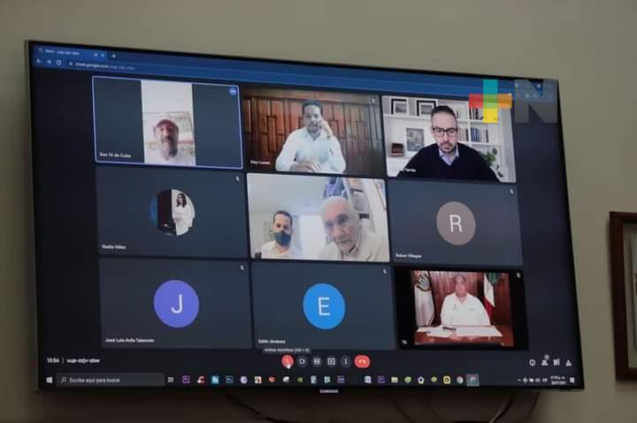 Xalapa, Ver.- El secretario de Gobierno, Eric Cisneros Burgos tuvo una reunión a distancia con integrantes de la Agencia Mexicana de Cooperación Internacional para el Desarrollo (AMEXCID) y de la Embajada de Cuba en México, para fortalecer la promoción de la memoria histórica y cultural con los preparativos de la conmemoración de los 200 años de los Tratados de Córdoba y del México Independiente.