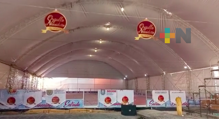 Trabajadores ultiman detalles para la reapertura del parque, colocación de la pista de hielo y templete donde se presentarán números artísticos como parte del Festival Orgullo Navideño 2021.