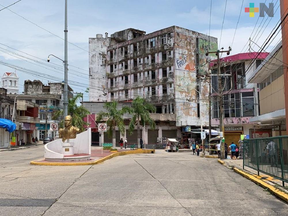 Ante riesgo de colapso, PC de Minatitlán acordona hotel que dejó de funcionar hace varios años