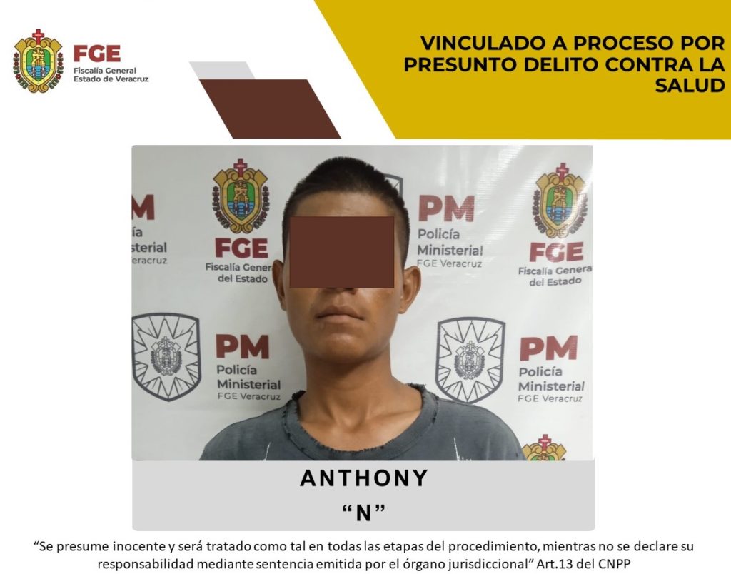 Coatzacoalcos, Ver.- La Fiscalía Regional Coatzacoalcos obtuvo vinculación a proceso en contra de Anthony “N”, por el presunto delito contra la salud en su modalidad de posesión simple.