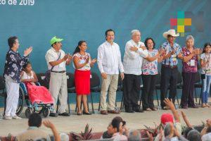 En su intervención, María Luis Albores González, secretaria de Bienestar, habló sobre tres de los programas que intensificarán en el norte de Veracruz: Sembrando Vida, adultos mayores y Un Millón de Becas para Personas con Discapacidad.
