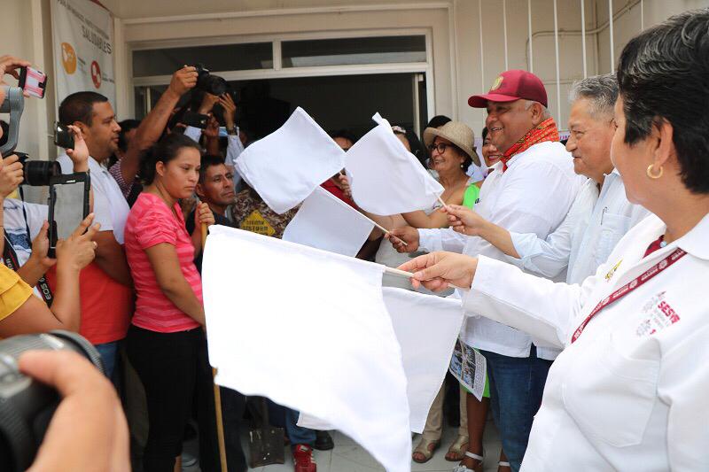 Previamente y como acto simbólico del inicio de trabajos, Cisneros Burgos y Ramos Alor dieron el banderazo, acompañados por la alcaldesa Clara Luz Domínguez Vargas.