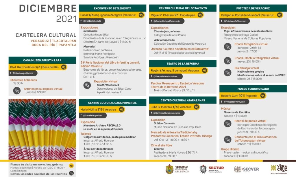 Xalapa, Ver.- Esta temporada, el Instituto Veracruzano de la Cultura (IVEC) ofrecerá un variado programa de actividades conformado por presentaciones editoriales y artísticas, funciones de cine, exposiciones y talleres en modalidad híbrida en la red de recintos ubicados en Xalapa, Coatepec, Veracruz, Boca del Río, Orizaba, Papantla y Tlacotalpan.