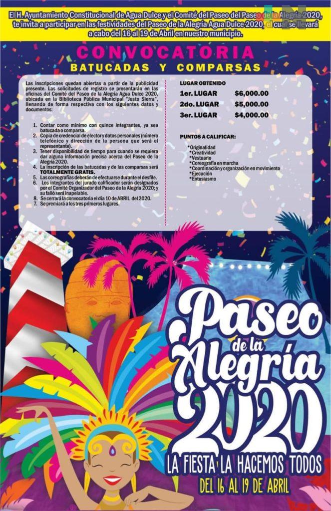 Coatzacoalcos, Ver.- Del 16 al 19 de abril, se celebrara el Paseo de la Alegría 2020, en el municipio de Agua Dulce.