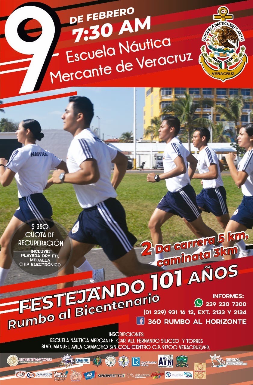 Veracruz, Ver.– El próximo 9 de febrero a las 07:30 horas se efectuará la Segunda Edición de la Carrera y Caminata de la Escuela Náutica Mercante de Veracruz, festejando 101 años rumbo al Bicentenario.