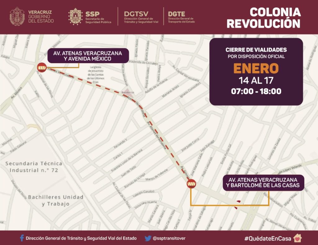 Xalapa, Ver.- De acuerdo al decreto emitido por el Gobierno de Veracruz en el que se establece la Alerta Preventiva por el virus SARS-COV-2, fueron anunciadas que vialidades de la capital de Veracruz estarán cerradas de las 7 de la mañana a las 6 de la tarde, este fin de semana.