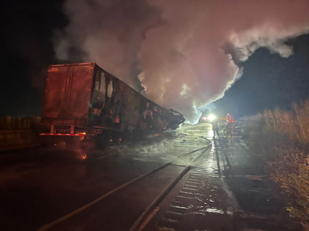 La Guardia Nacional, división de caminos, aseguró el área cerrando el carril en dirección a Ixhuatlán del Sureste mientras se realizaban labores de extinción y enfriamiento de la unidad.