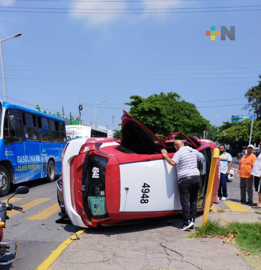 Una camioneta particular impactó a un taxi con número económico 4948, a causa del fuerte impacto la unidad del transporte público volcó sobre la arteria vial.