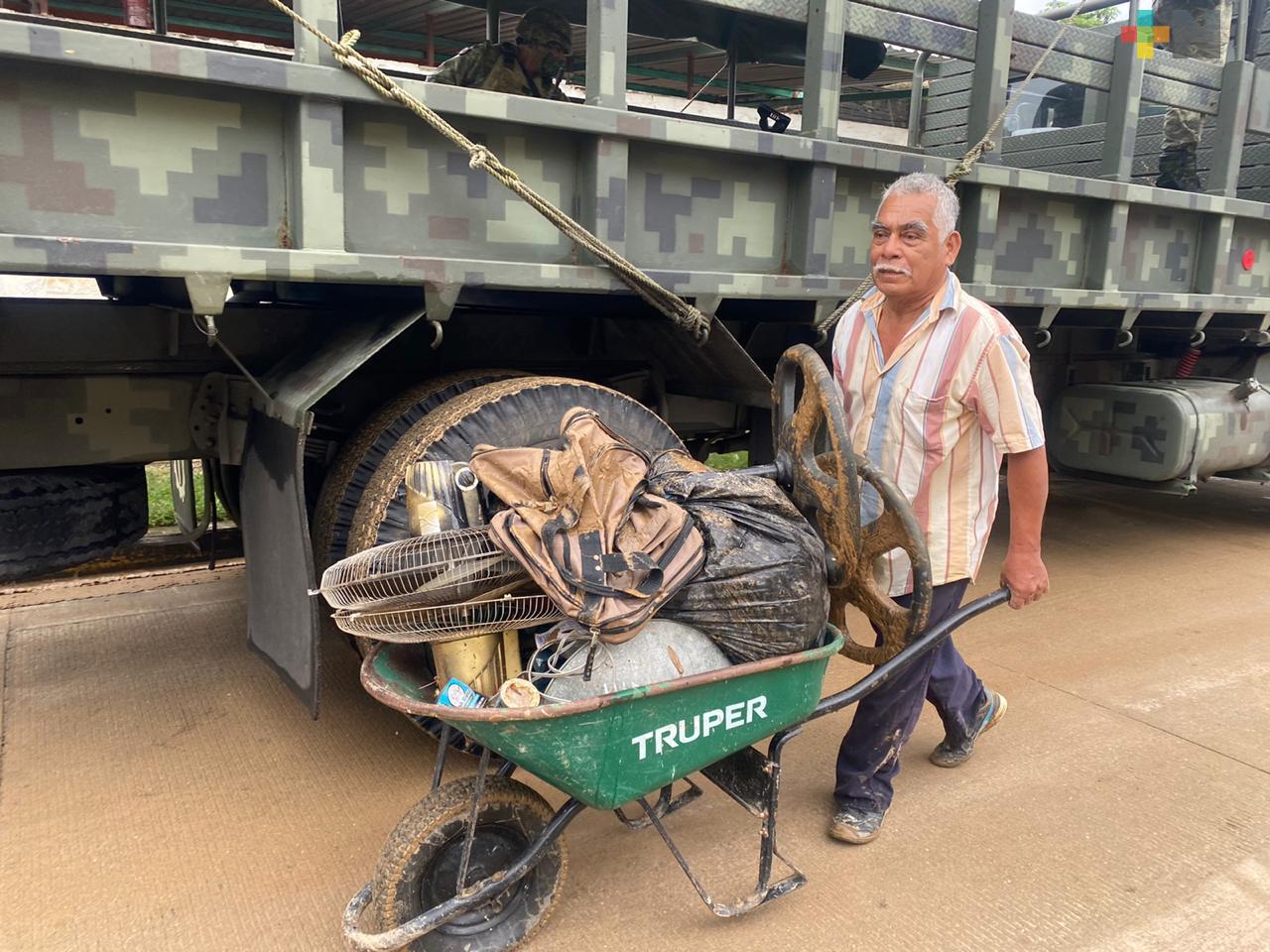 Personal del Ejército apoya desde temprano a las familias que resultaron afectadas, realizando labores de limpieza en sus viviendas y rescatando enseres domésticos.