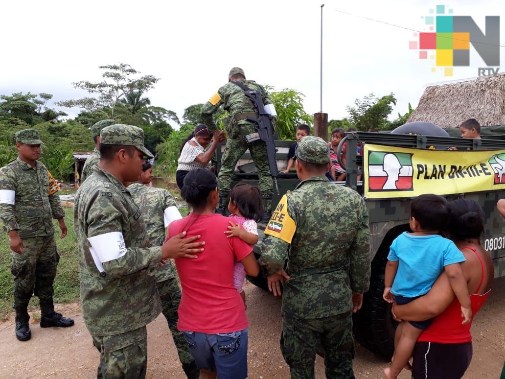 Cosoleacaque, Ver.- Debido a las fuertes lluvias provocadas por el Frente Frío número 6 en Cosoleacaque, soldados del Tercer Batallón de Infantería aplicaron el Plan DN-III-E.