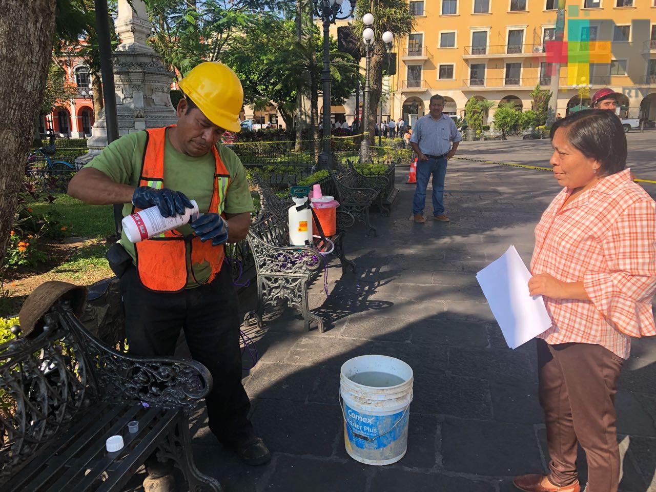 Córdoba, Ver.- Para evitar que sean afectadas por el insecto “picudo rojo”, que ya tiene presencia en la zona centro del estado, la Jefatura de Ecología y Medio Ambiente, sometió a un tratamiento fitosanitario a las palmeras del parque 21 de Mayo en Córdoba.