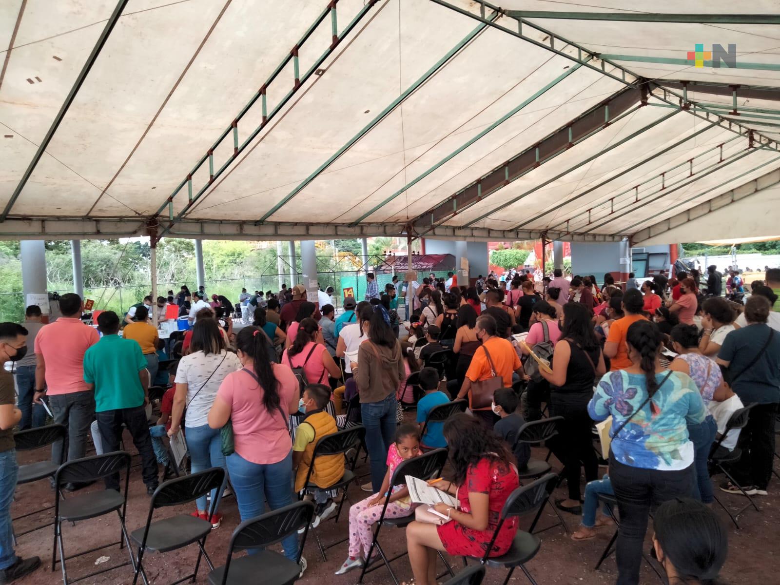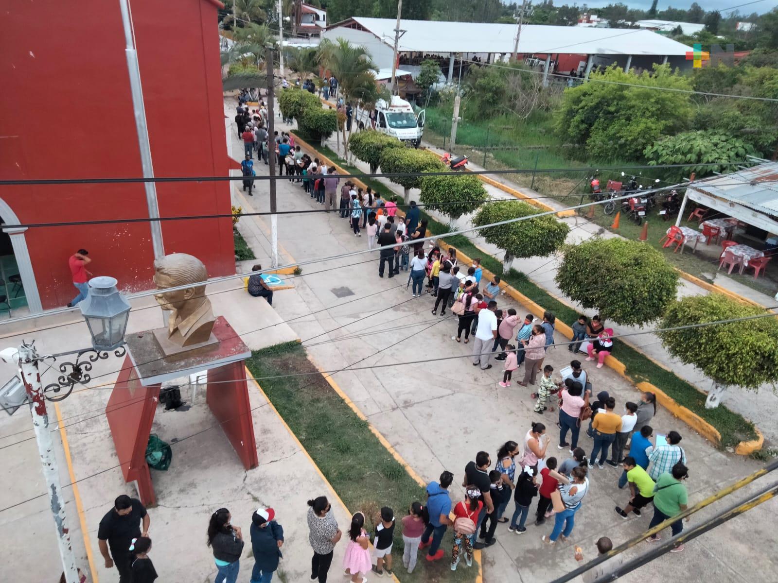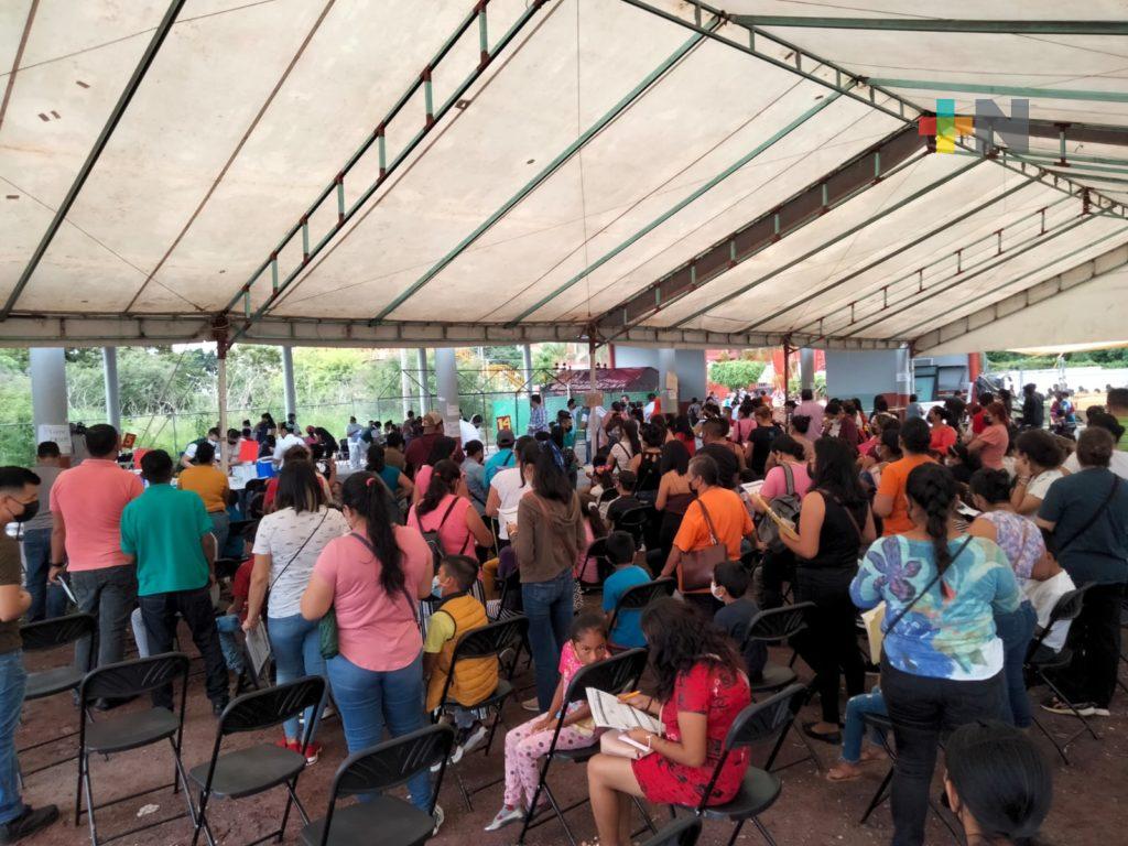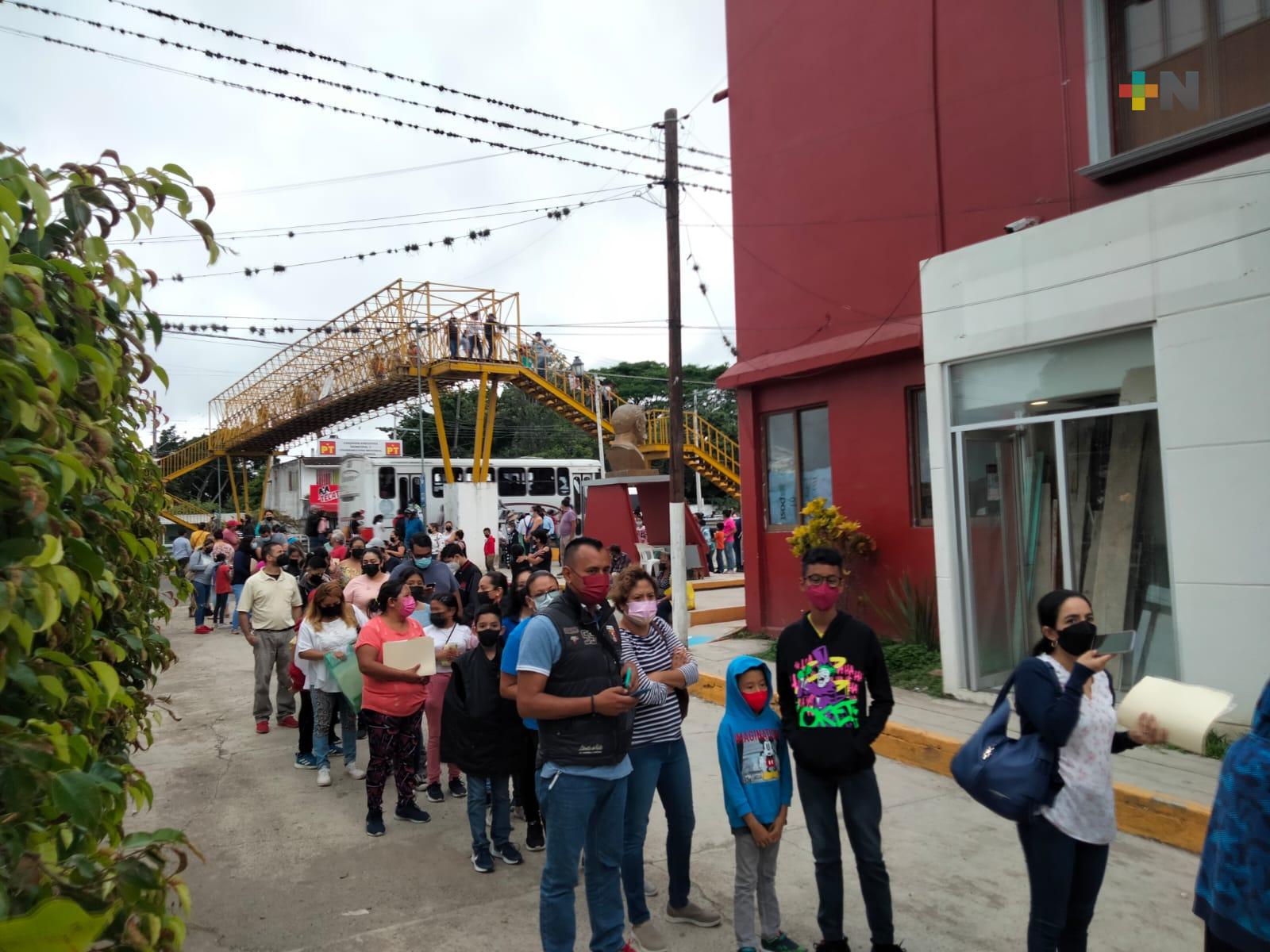 Al salón de usos múltiples en Dos Ríos ubicado a un costado del palacio municipal, llegaron madres y padres de familia con sus pequeños, quienes celebraron que ya se les proteja contra los efectos del coronavirus.