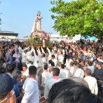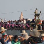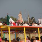 Al salir de la iglesia la virgen fue cargada por férreas manos de hombre que uniformados con sus guayaberas blancas y sus pantalones color kaki, la trasladarán por las calles del pueblo hasta el río, en donde fue subida a una panga para recorrer parte del Papaloapan.