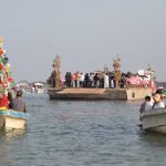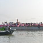 Miles de feligreses acompañaron a la virgen durante su recorrido, trasladándose en lanchas, motos acuáticas o yates, sin faltar los cayucos que día a día surcan el río llevando pescadores.