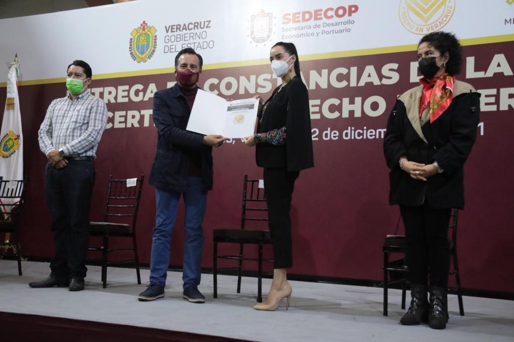 Xalapa, Ver.- Al proporcionar 25 constancias de la Marca de Certificación “Hecho en Veracruz” a empresas locales, el gobernador Cuitláhuac García Jiménez garantizó que continuará este apoyo junto con los programas sociales que, al otorgarse de manera directa, contribuyen a la reactivación económica.