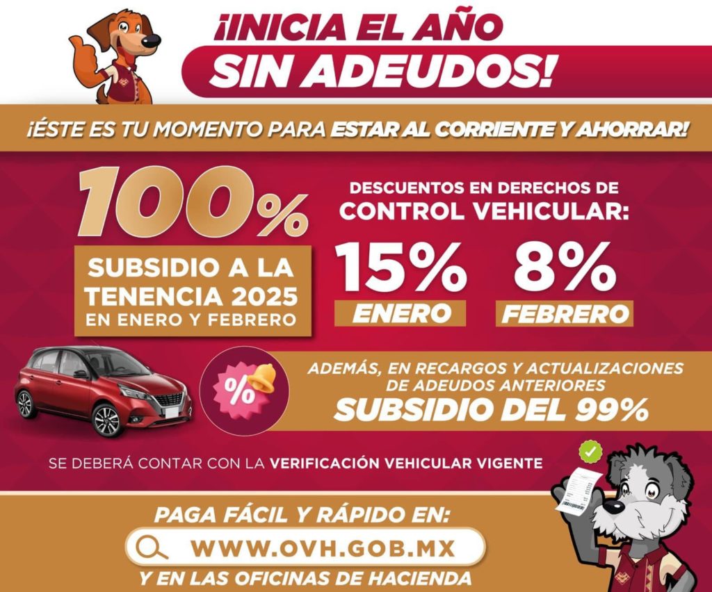 - También concluyen los subsidios del 100% en tenencia y 99% en recargos y actualizaciones.