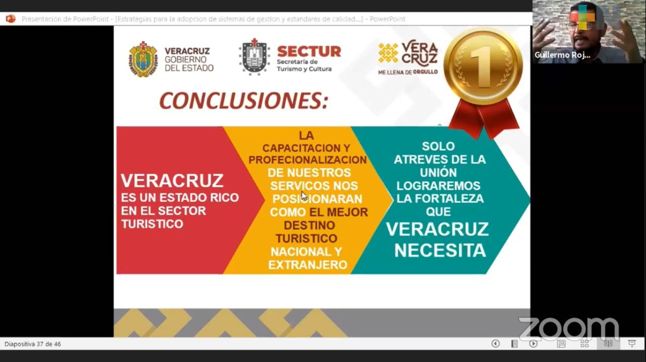 A través de la ponencia virtual “Estrategias para la adopción de sistemas de gestión y estándares de calidad en las MiPyMES turísticas veracruzanas en tiempos pospandémicos”, el consultor de Punto Limpio y Moderniza, José Guillermo Rojas Jácome, expuso la necesidad de ofrecer alternativas para todos los gustos y posibilidades, priorizando la salud de trabajadores y clientes.