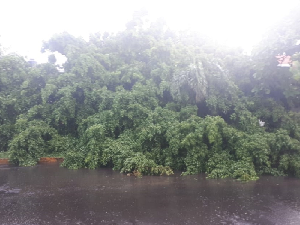Debido a esto, uno de los carriles fue cerrado a la circulación vehicular, a causa de que las ramas cubrieron la calle, mientras que parte del pavimento se rompió.