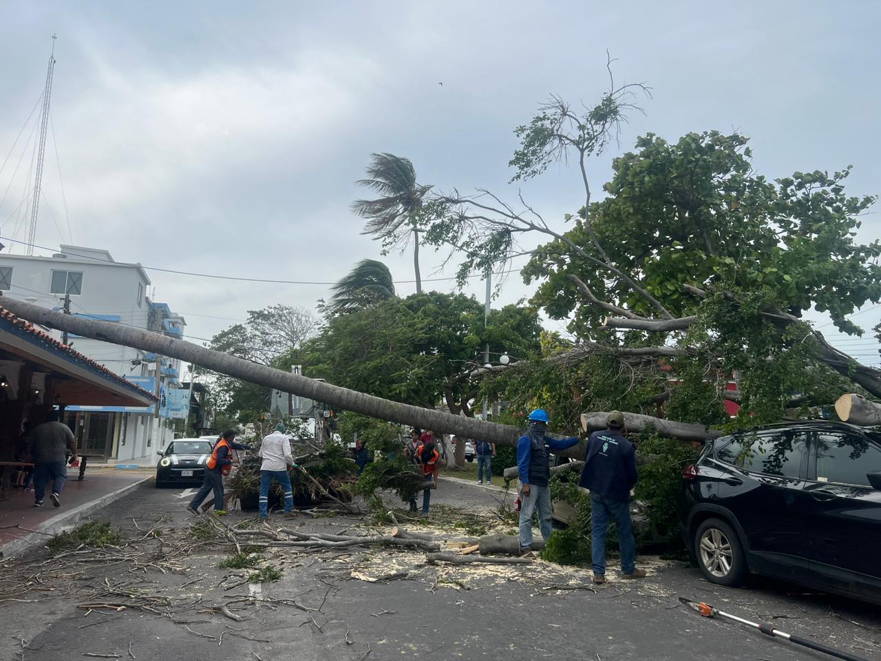 En Boca del Río, más de 60 reportes que fueron atendidos, entre caída de árboles, postes, desprendimiento de toldos, laminas desprendidas, semáforos y fachadas afectados.