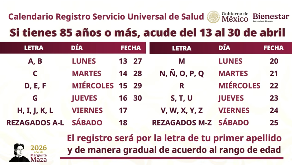 La secretaria de Bienestar, Ariadna Montiel, informó que el registro comenzará del 13 al 30 de abril en 21 ciudades del país, iniciando con personas de 85 años o más.