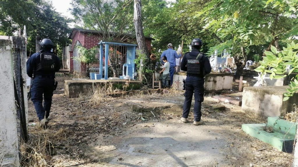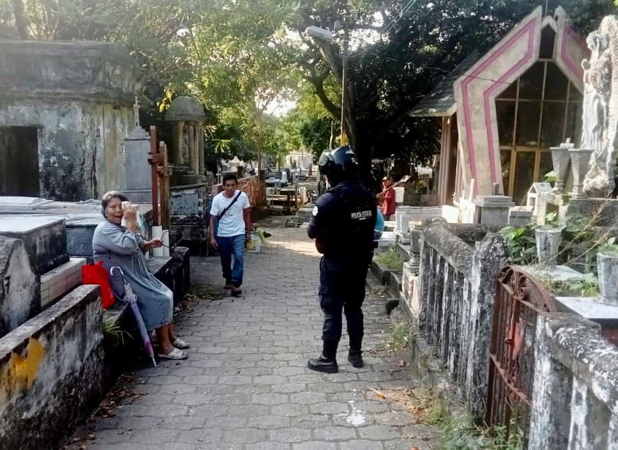 Realizando recorridos constantes en los cementerios de los municipios de Minatitlán, Ixhuatlán del Sureste, Agua Dulce, San Andrés Tuxtla, Nanchital y Coatzacoalcos, a fin de garantizar el orden y la paz, previniendo cualquier acto ilícito. ¡Disfruta unas festividades seguras!», así lo publicaron en su cuenta oficial de Facebook, la SSP.
