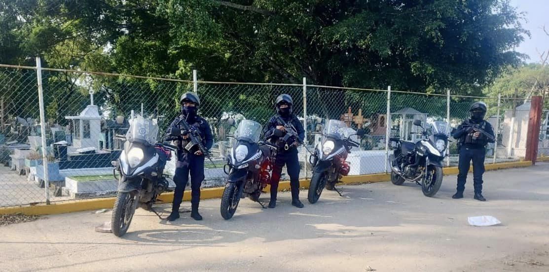 Realizando recorridos constantes en los cementerios de los municipios de Minatitlán, Ixhuatlán del Sureste, Agua Dulce, San Andrés Tuxtla, Nanchital y Coatzacoalcos, a fin de garantizar el orden y la paz, previniendo cualquier acto ilícito. ¡Disfruta unas festividades seguras!», así lo publicaron en su cuenta oficial de Facebook, la SSP.