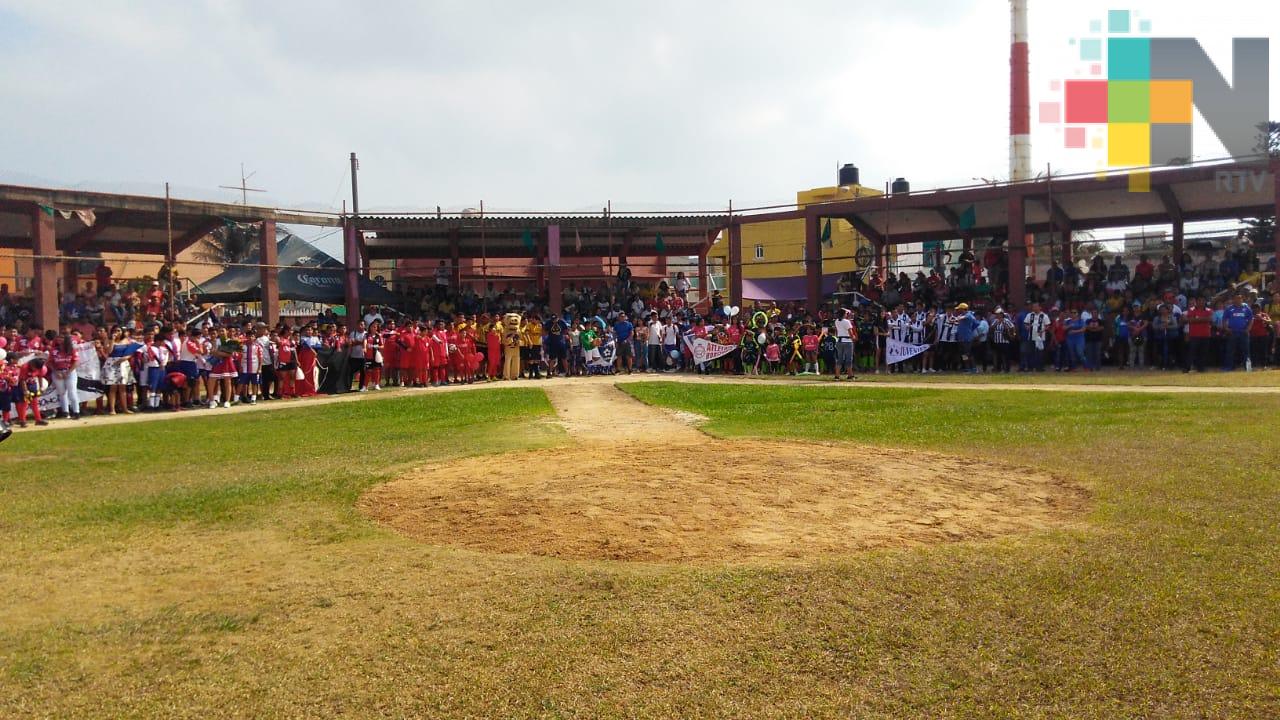 Equipos de las categorías pañalitos, kínder, infantil, juvenil menor, mayor y bachilleres que actúan en la novena campaña, participaron en el protocolo que da paso al arranque formal de las actividades del circuito.