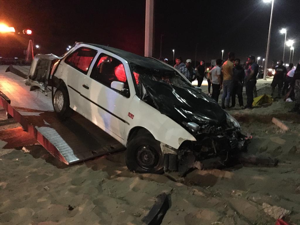 De acuerdo con los primeros datos ambas unidades transitaban a exceso de velocidad y participaban en arrancones, cuando otro vehículo un Tsuru color blanco impactó por la parte trasera al pointer y este a su vez al Civic, perdiendo el control de las unidades y terminado desbaratadas sobre las dunas, el Tsuru se retiró del lugar.