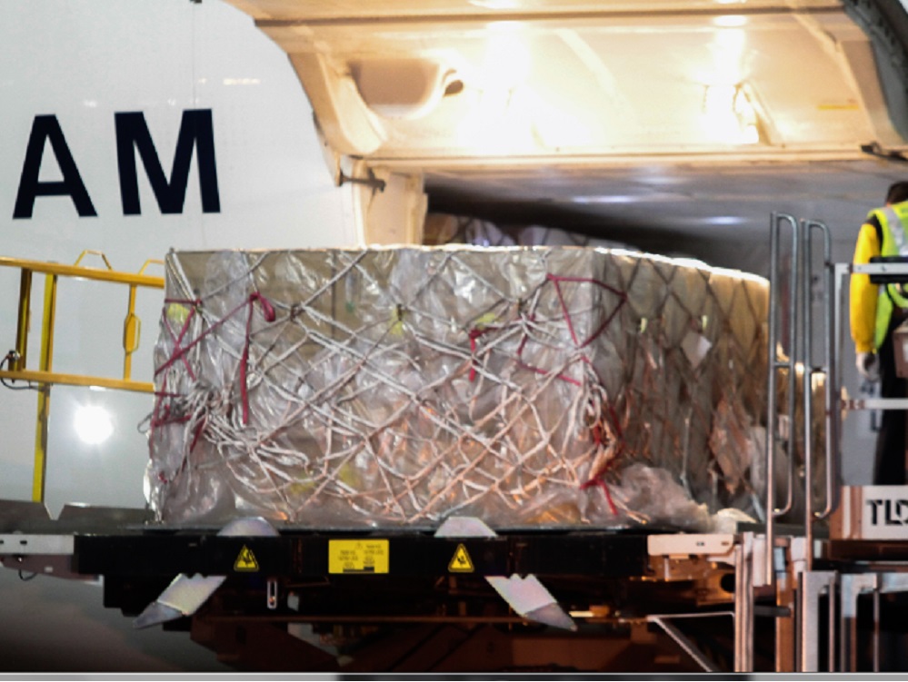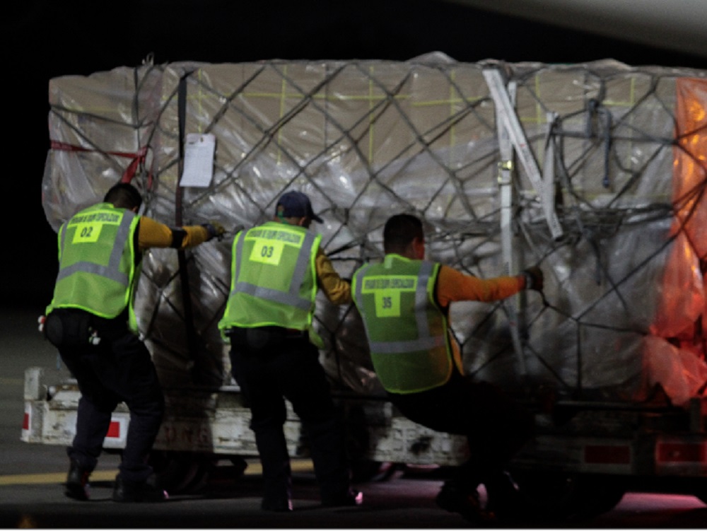 El cargamento fue de 10 toneladas, unos 100 metros cúbicos, y constó en 1.9 millones de tapabocas sencillos y 800 mil del tipo KN95, para personal médico de terapia intensiva. Será distribuido por el Instituto de Salud Para el Bienestar (Insabi) y el Sector Salud federal.