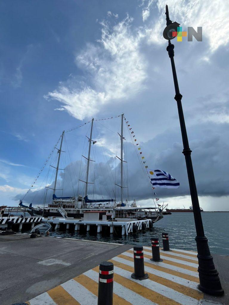 Arriba velero de la Armada de Uruguay al puerto de Veracruz