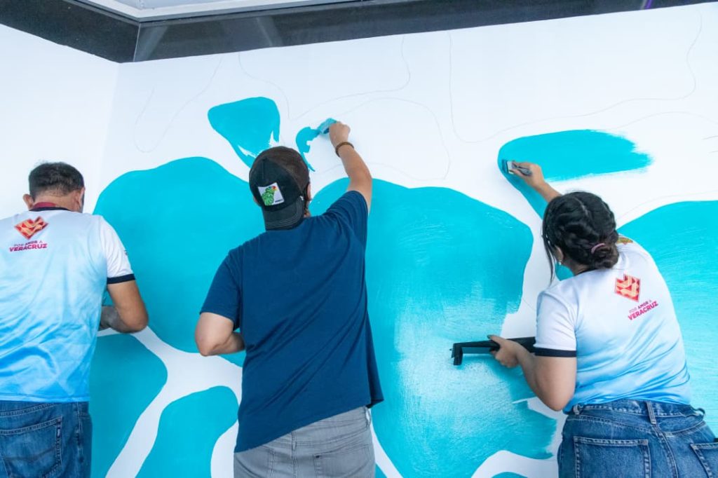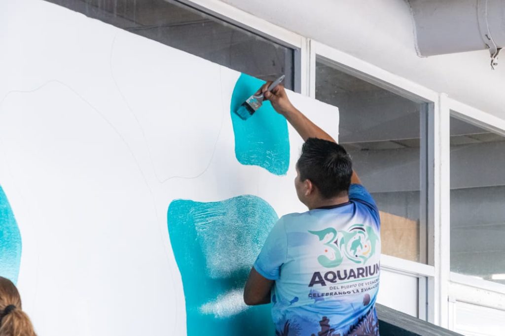 Veracruz, Ver.- El Aquarium del Puerto de Veracruz inició la realización de un mural monumental en la terraza del delfinario, como parte de su campaña Crea, Inspira y Conserva, iniciativa que busca unir el arte con la educación ambiental.