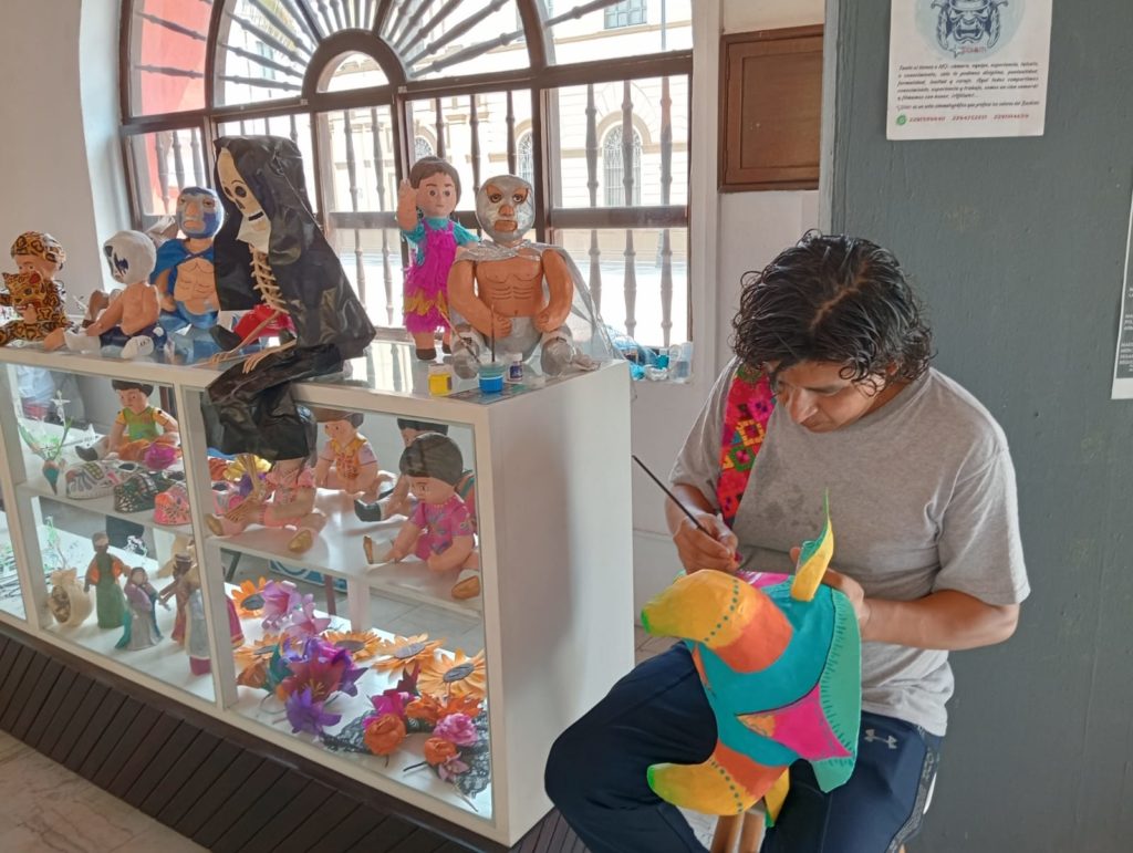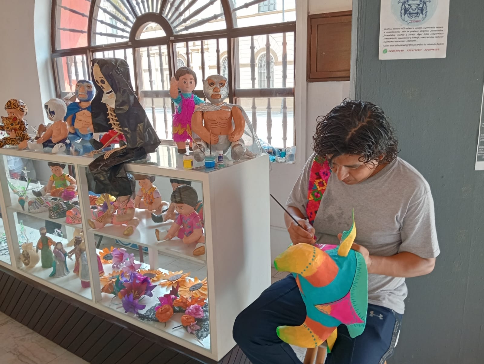 Artesano de Puebla expone trabajo de cartonería en Atarazanas