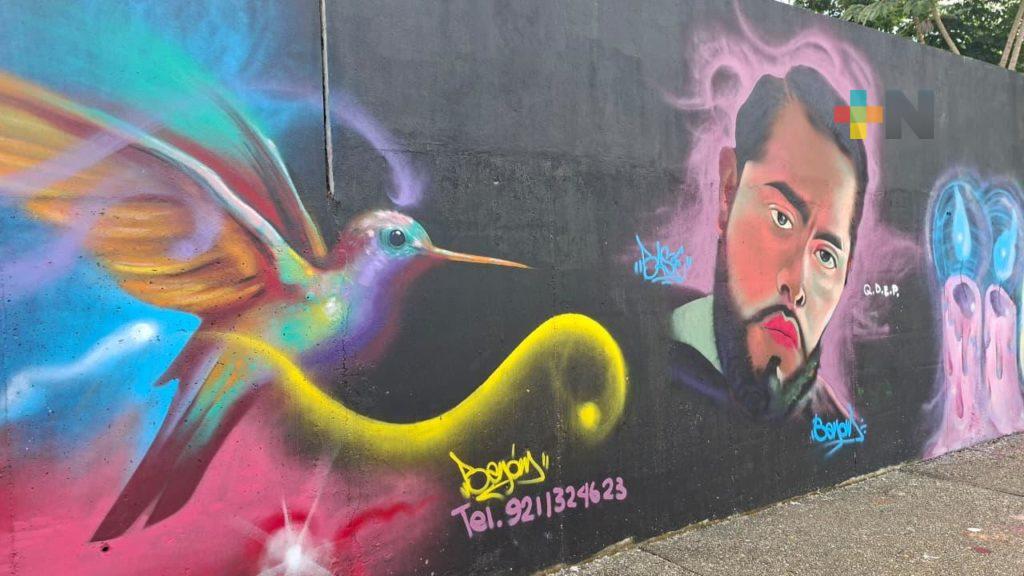 Artistas de Coatza tomaron como lienzo barda del panteón municipal