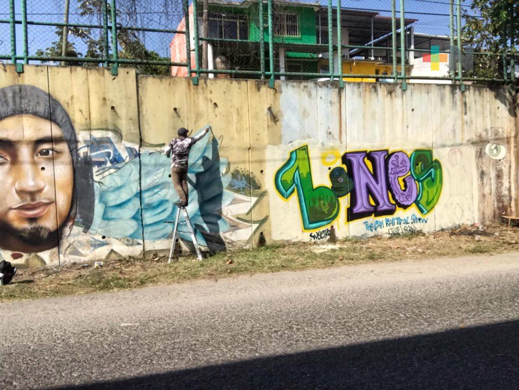 Veracruz, Ver.- Artistas urbanos pintaron un mural para honrar la memoria de su compañero Manuel Alejandro Jiménez conocido como Bonesk Ones, quien falleció a causa de la explosión de la refinería «Lázaro Cárdenas» en Minatitlán.