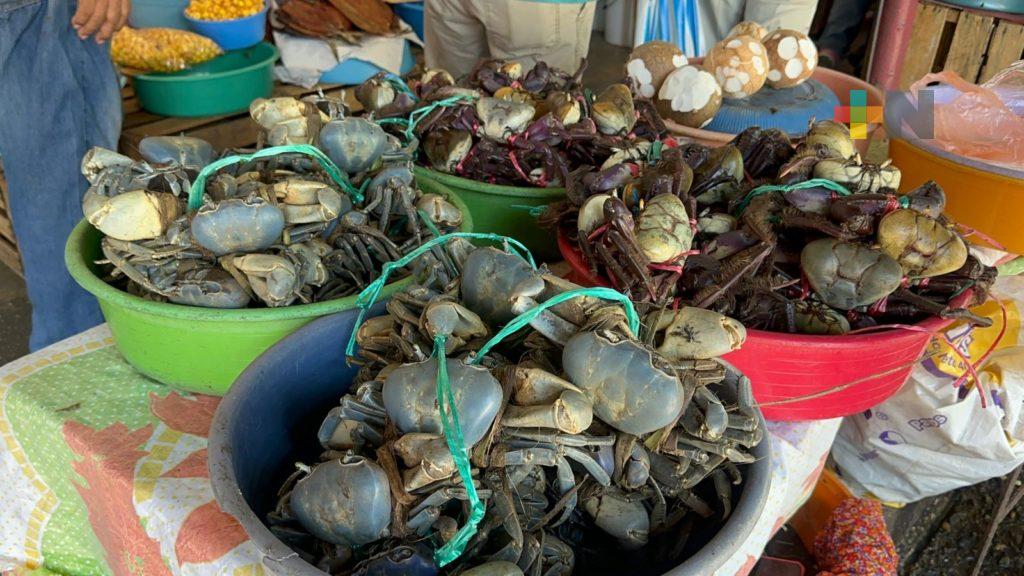 En mercados de Coatzacoalcos y en redes sociales se vende el cangrejo azul por mazo de hasta seis a ocho cangrejos por 150 pesos.