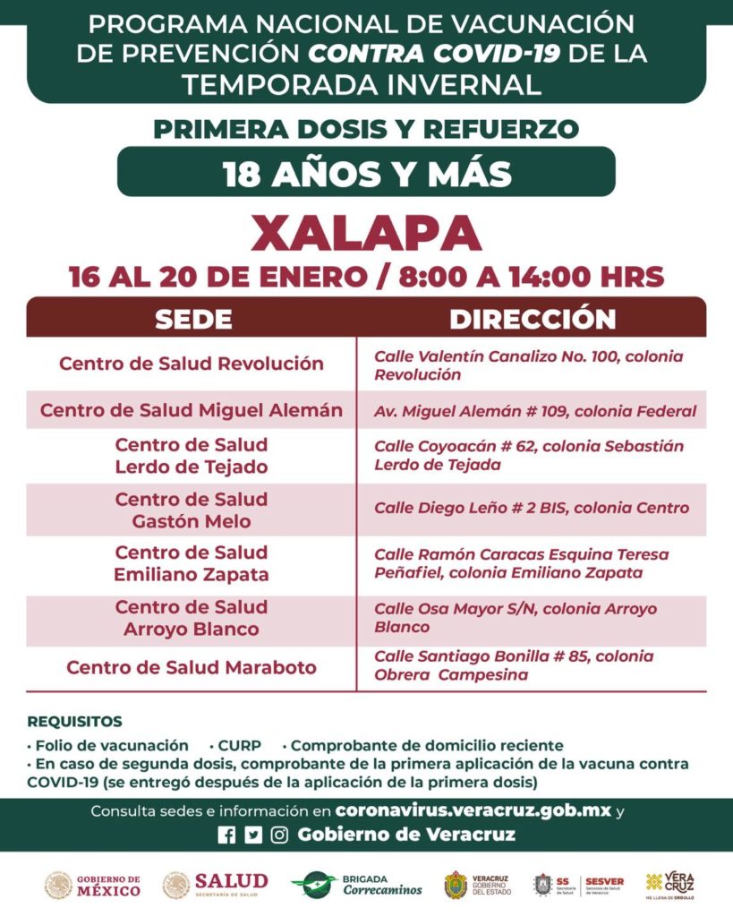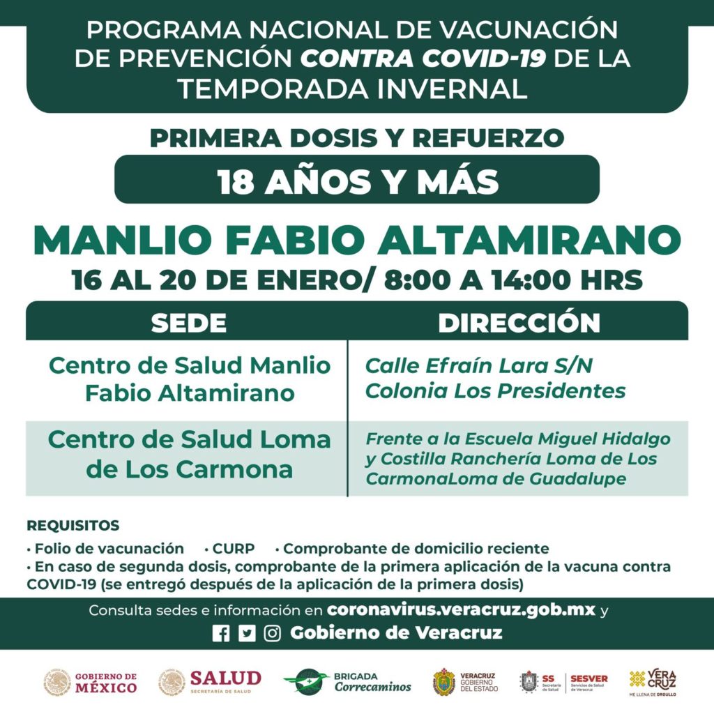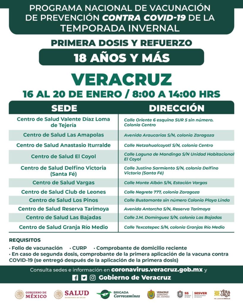 la lista de municipios que aplicarán dosis contra COVID-19 de este lunes 16 al viernes 20 de enero, entérate de los detalles en Secretaría de Salud de Veracruz«, así lo publicó en Facebook, el mandatario estatal.