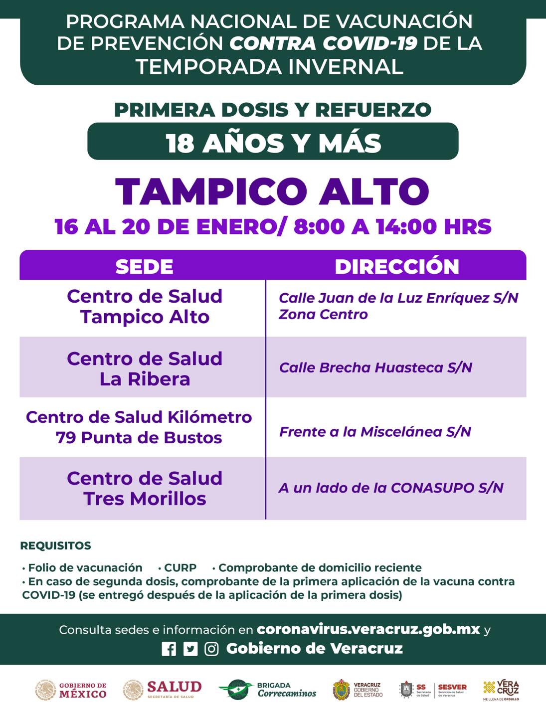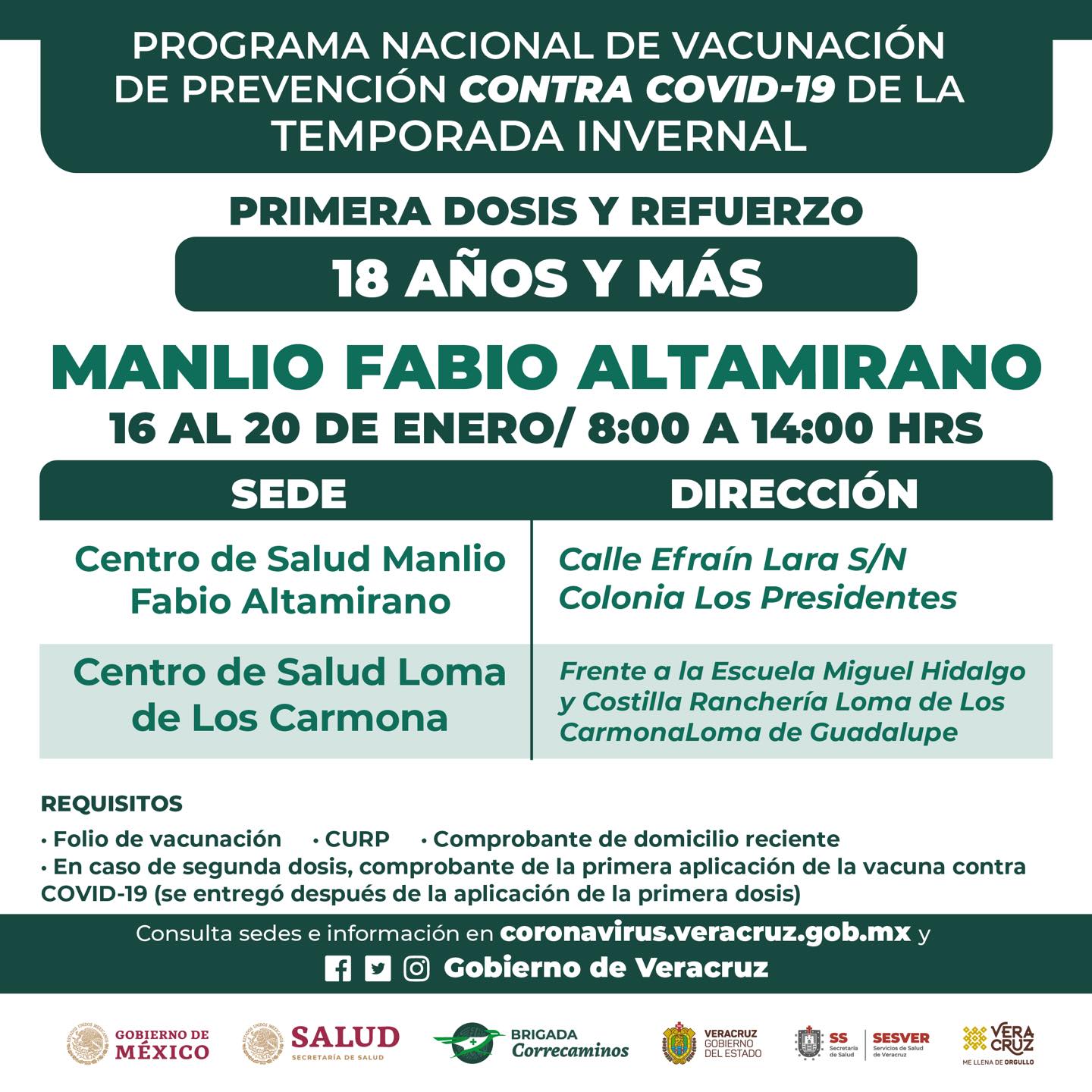 la lista de municipios que aplicarán dosis contra COVID-19 de este lunes 16 al viernes 20 de enero, entérate de los detalles en Secretaría de Salud de Veracruz«, así lo publicó en Facebook, el mandatario estatal.