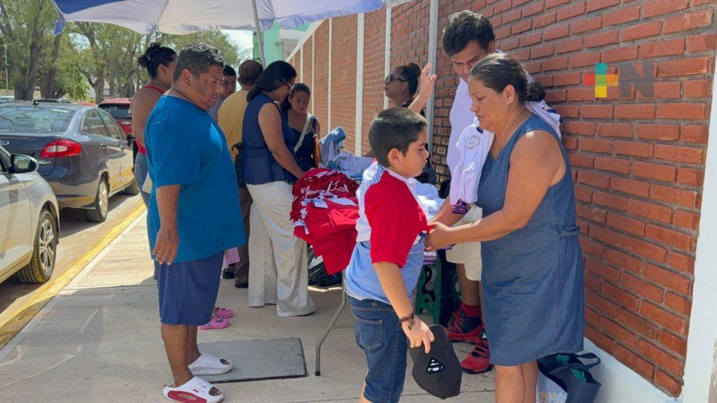 Coatzacoalcos, Ver.- Madres y padres de familia están adquiriendo los uniformes escolares tanto en sitios establecidos como afuera de los planteles.