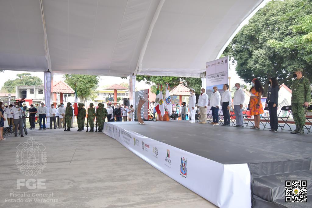 Yanga, Ver.- En el municipio de Yanga, la Fiscal General del Estado, Verónica Hernández Giadáns participó como invitada de honor del Presidente Municipal, Fernando Nicolás Gordillo Torres, en el acto de conmemoración del 413 Aniversario de la Resistencia de Yanga contra la represión de las tropas virreinales.