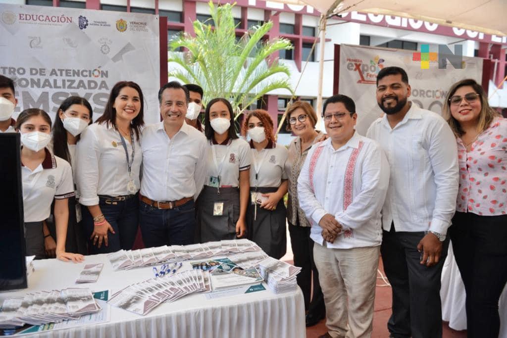 Tierra Blanca, Ver.- Ante miles de alumnos asistentes a la Expo Feria Educativa 2022, el gobernador Cuitláhuac García Jiménez compartió su experiencia como catedrático, y como alumno, y destacó la importancia de como profesionista mantenerse constantemente capacitándose y ser cada día mejores estudiantes.