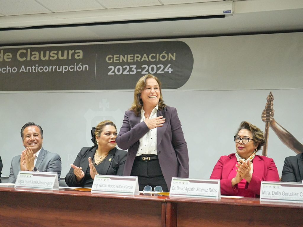 En el marco de la Ceremonia de Clausura Primera Especialidad en Derecho Anticorrupción realizada por el Poder Judicial del Estado de Veracruz y la Escuela Judicial del Estado de Veracruz, la ejecutiva electa reconoció el esfuerzo de las autoridades y las nuevas generaciones por actualizarse y regirse bajo un marco normativo adecuado, acorde a los nuevos tiempos y respetando los principios y valores que en el neoliberalismo fueron violentados.