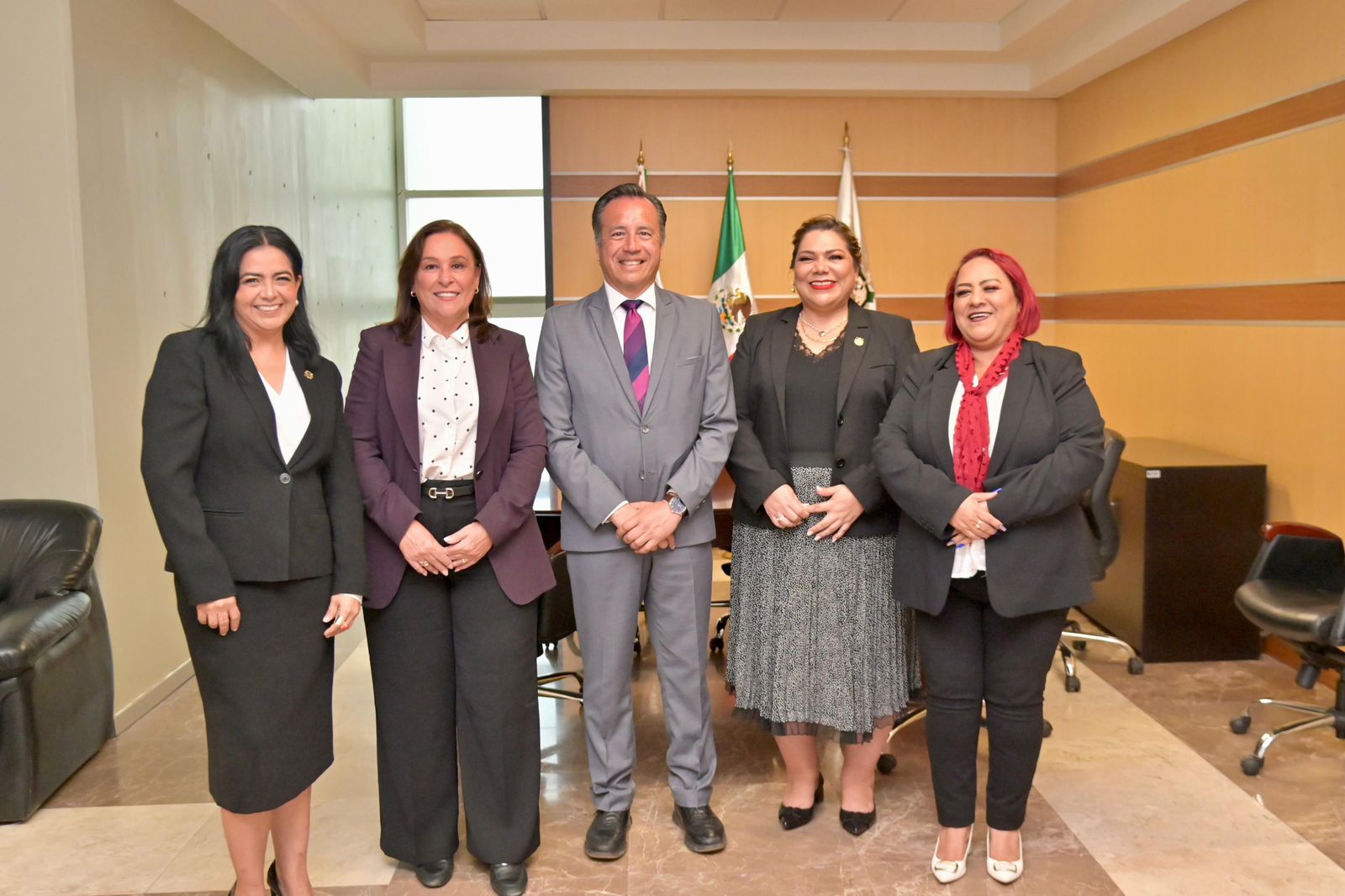 de Veracruz; Dip. Adriana Esther Martínez Sánchez, Presidenta de la Mesa Directiva de la LXVI Legislatura del Congreso del Estado de Veracruz; Dr. David Agustín Jiménez Rojas, Comisionado Presidente del Instituto Veracruzano de Acceso a la Información y Protección de Datos Personales; Mtra. Delia González Cobos Auditora General del Órgano de Fiscalización Superior del Estado de Veracruz; Lcda. Clementina Salazar Cruz, Titular de la Fiscalía Especializada en Combate a la Corrupción del Estado de Veracruz y Lic. Miguel Ángel Olivares Martínez, Contralor General del Estado de Veracruz.