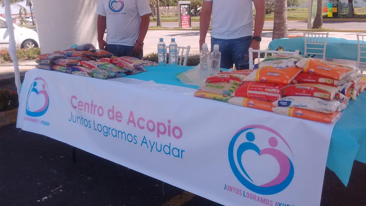 Veracruz, Ver.- En el estacionamiento de un supermercado en la Riviera Veracruzana, la asociación civil «Juntos Logramos Ayudar» instalaron un centro de acopio para beneficiar a un asilo de ancianos y 4 albergues en la zona conurbada Veracruz-Boca del Río.